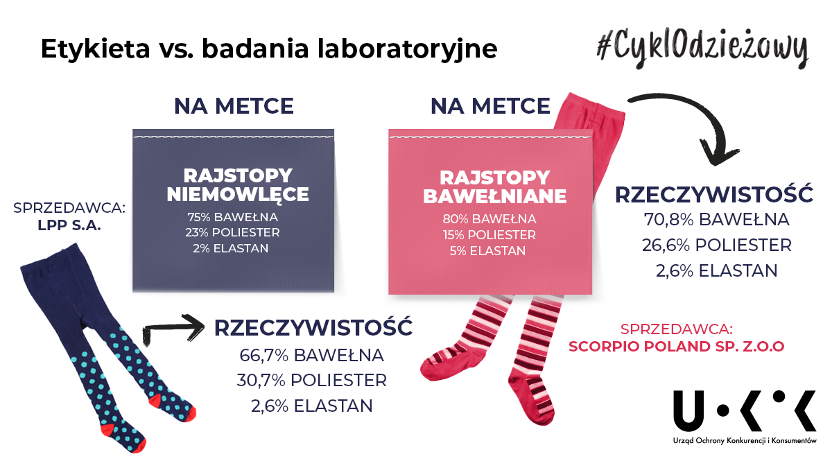 Skarpetki, rajstopy i podkolanówki – Inspekcja Handlowa oceniła oznakowanie oraz jakość 566 partii rajstop i skarpetek dla niemowląt, dzieci i dorosłych. Zakwestionowano 91 z nich. Najczęstsze błędy dotyczyły oznakowania.