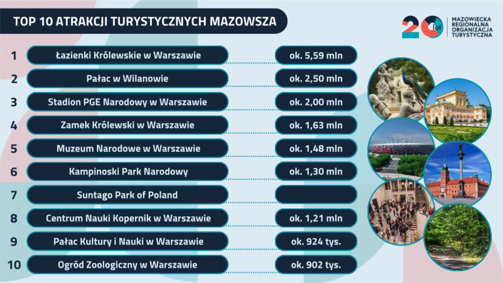 Trend ten znajduje bezpośrednie odzwierciedlenie w strukturze ruchu turystycznego na Mazowszu. Warszawa jako najchętniej odwiedzane miasto w Polsce, przyciągnęła w 2025 roku około 5,5 mln turystów, wyprzedzając Kraków (ok. 3,25 mln) i Wrocław (ok. 1,54 mln). Jednocześnie w ujęciu całego powiatu liczba odwiedzających przekracza 8 mln.