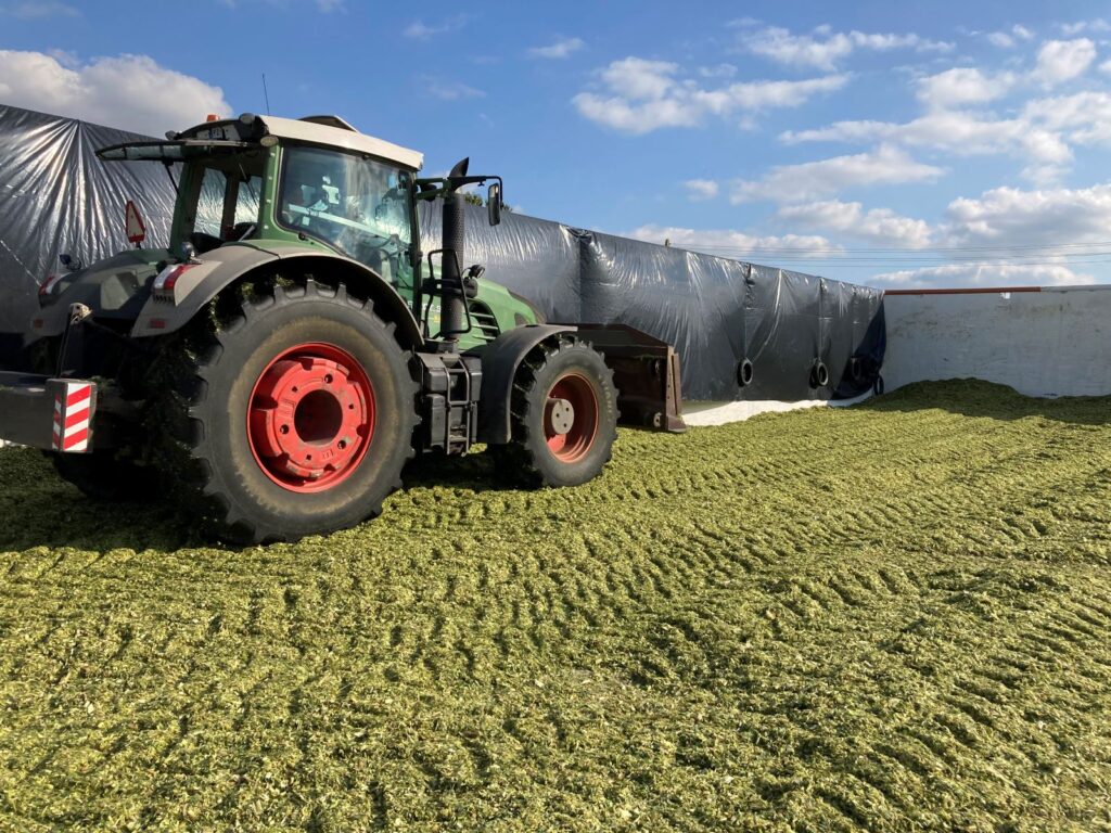 Decyzja o tym jaką metodę przygotowania kiszonki z kukurydzy podejmuje rolnik. Zależy od specyfiki gospodarstwa i dostępności środków oraz jego zasobów. Niezmiennie istotna pozostaje technologia przygotowania kiszonki z kukurydzy, zanim zostanie zdeponowana w pryzmie, silosie lub rękawie. Termin zbioru, stopnień rozdrobnienia, wysokość cięcia są kluczowe dla jakości przygotowanej paszy. Podobnie jak sam wybór odpowiedniej odmiany, jak na przykład DKC3418. Wyróżnia się ona podwyższoną strawnością włókna i bardzo wysoką zawartością skrobi. Ponadto cechuje ją silny efekt Stay-Green, dzięki któremu pozostaje długo zielona na polu. Wydłuża to okno zbiorcze kukurydzy, a pozyskany z niej materiał jest soczysty i plastyczny. Ma to ogromny wpływ na ubijanie zielonki i stworzenie warunków beztlenowych, niezbędnych do właściwej konserwacji paszy i utrzymanie jej stabilności przez cały okres skarmiania.
