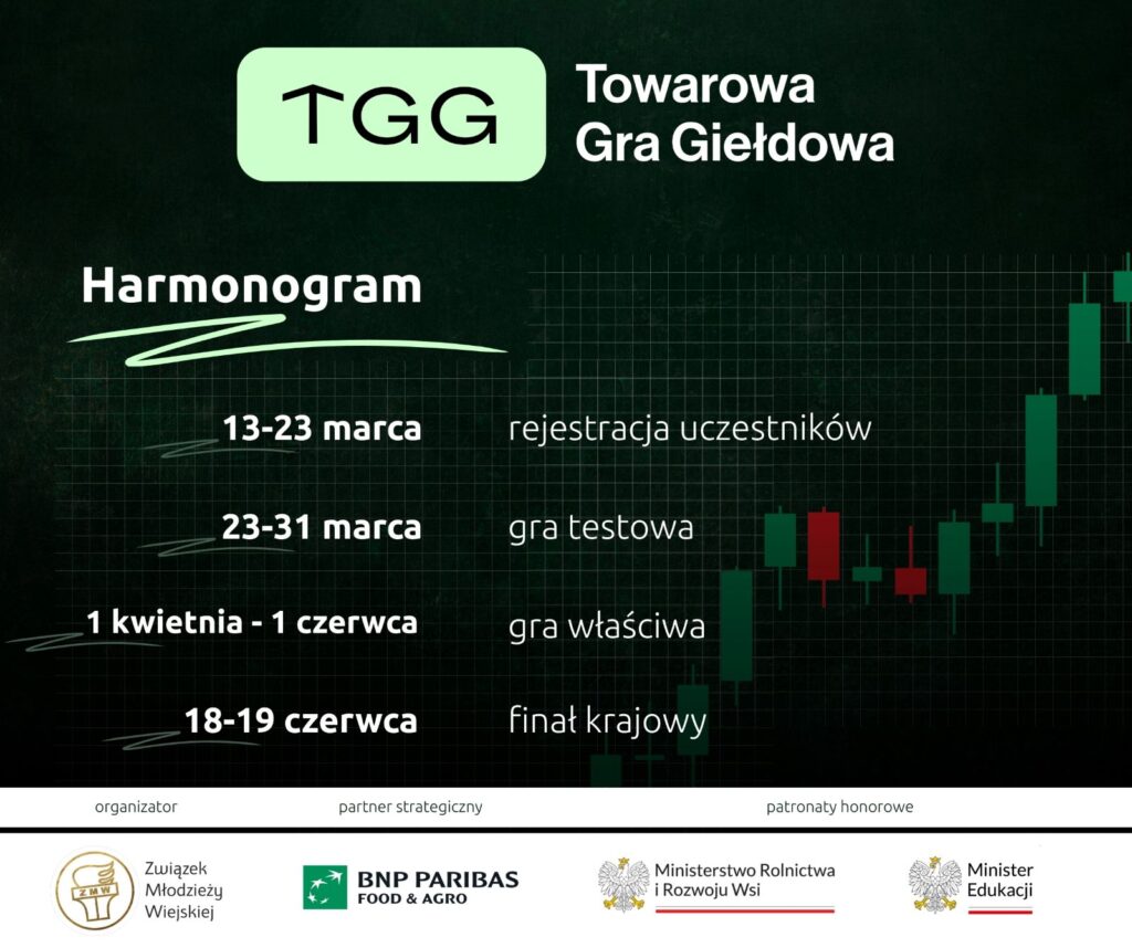 W odpowiedzi na rosnące znaczenie kompetencji ekonomicznych, analitycznych oraz znajomości mechanizmów rynkowych w sektorze rolno-spożywczym, powstała Towarowa Gra Giełdowa (TGG). To nowoczesny projekt edukacyjny skierowany do młodych osób zainteresowanych rolnictwem, ekonomią i inwestowaniem w surowce rolne.
